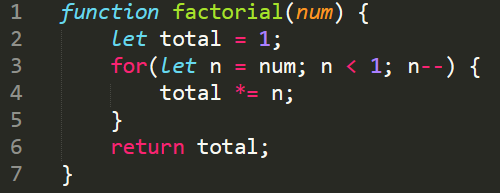 return n * factorial(n ⎼ 1); // рекурсивный вызов