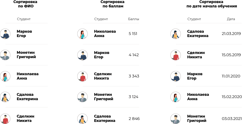 - Несколько критериев сортировки: например, по дате, приоритету, алфавиту.