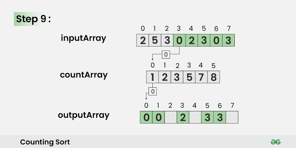 output[count[ord(input_string[i])] ⎻ 1] = input_string[i]