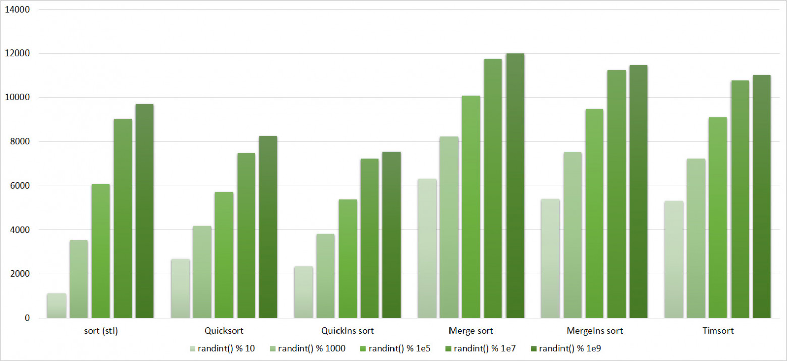 - Counting sort — подсчет частот и перестановка элементов по итогу;