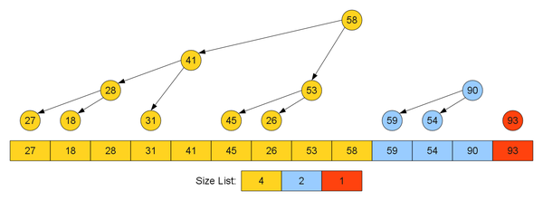 - Сортировка: После завершения вставки всех элементов мы производим симметричный обход дерева, что даст нам элементы в отсортированном порядке.