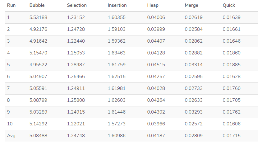 Как видно, QuickSort отлично показывает себя на практике, но требует аккуратного подхода к выбору опорного элемента, чтобы не ухудшать производительность.